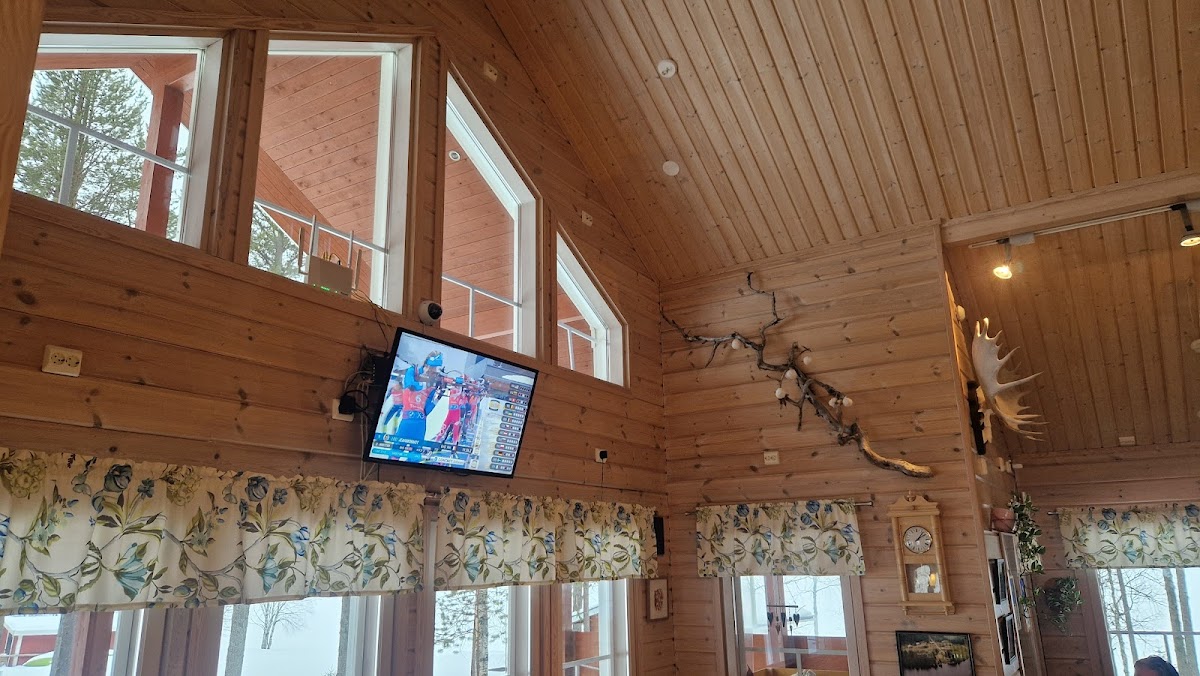 If breakfast is on your mind, look no further. Regulars like Isabelle Athena delight in stopping by each morning before heading to the nearby slopes of Ylläs for snowboarding. There’s an undeniable charm in starting your day with a hearty meal surrounded by lovely company and the warmth of the indoor fireplace.
