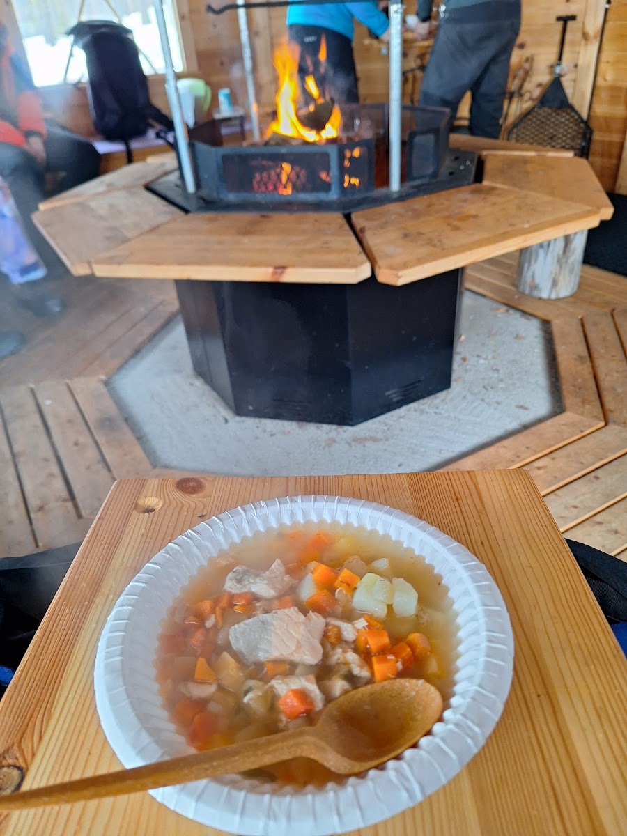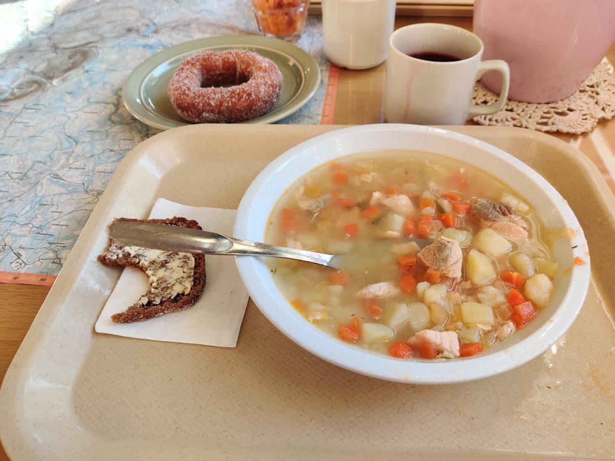 Delicious salmon soup and a nice stop to sit and relax for a minute.