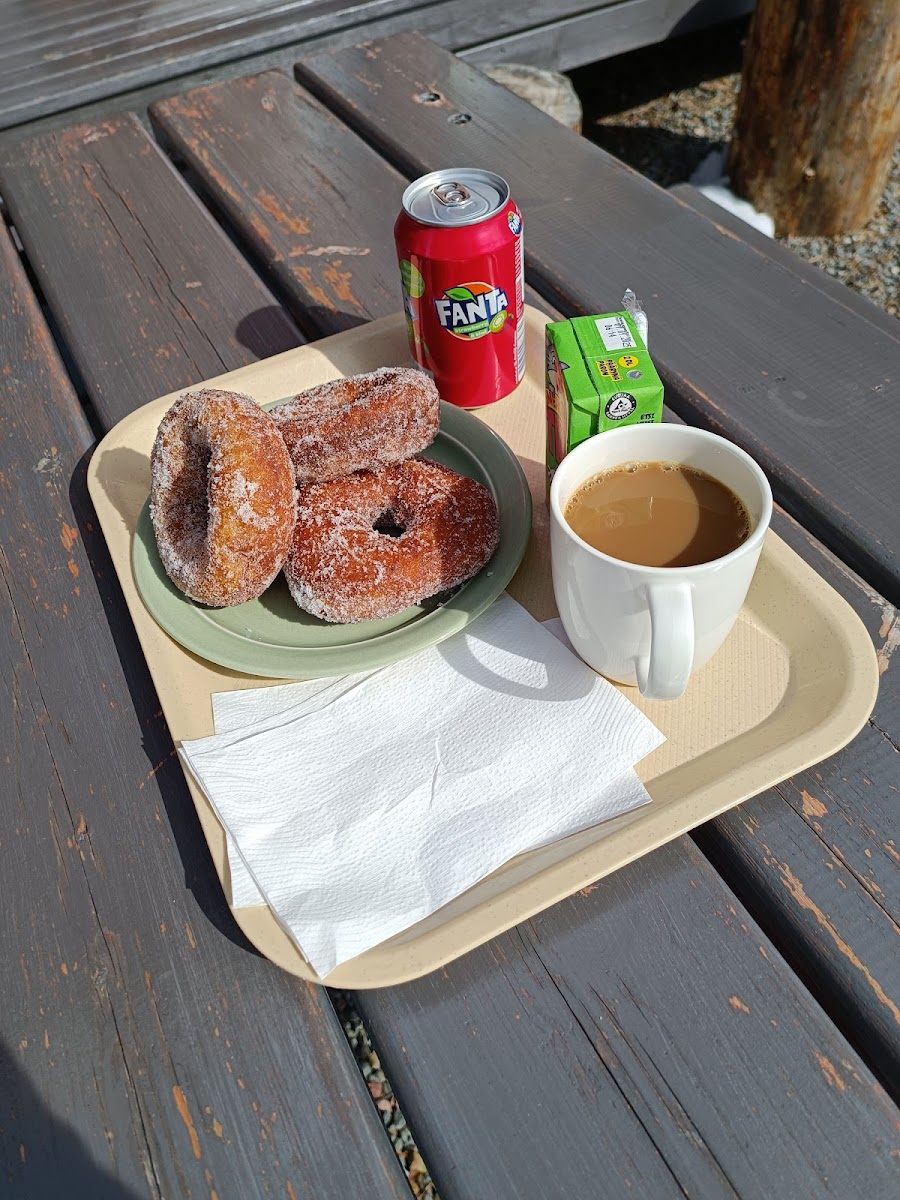 Oiva latukahvila! Todella herkulliset munkit ja kalakeitto. Ystävällinen henkilökunta. Tänne kannattaa saapua Tunturijärven suunnan latua. Hannukaisen suunnasta latu seuraa luotisuoraa sähkölinjaa. Autollakin muuten pääsee, jos haluaa vaikka vain munkille.